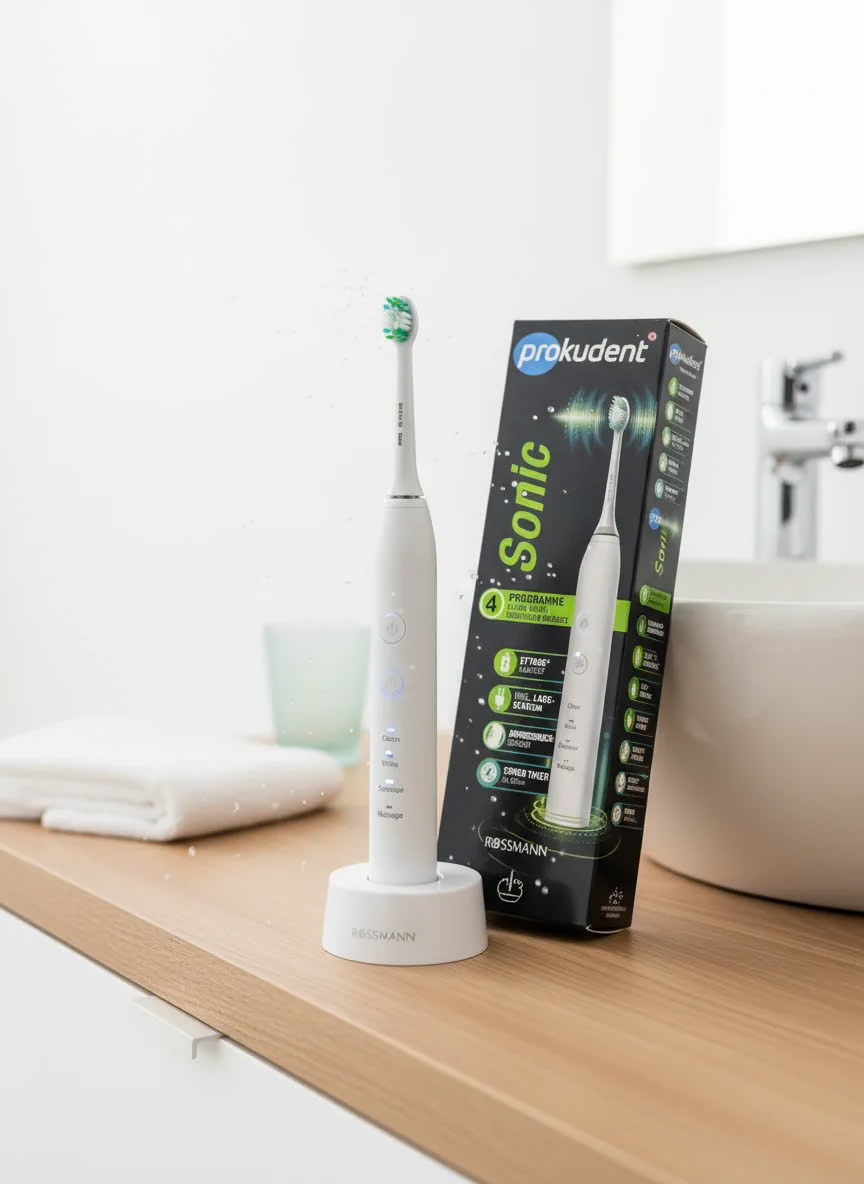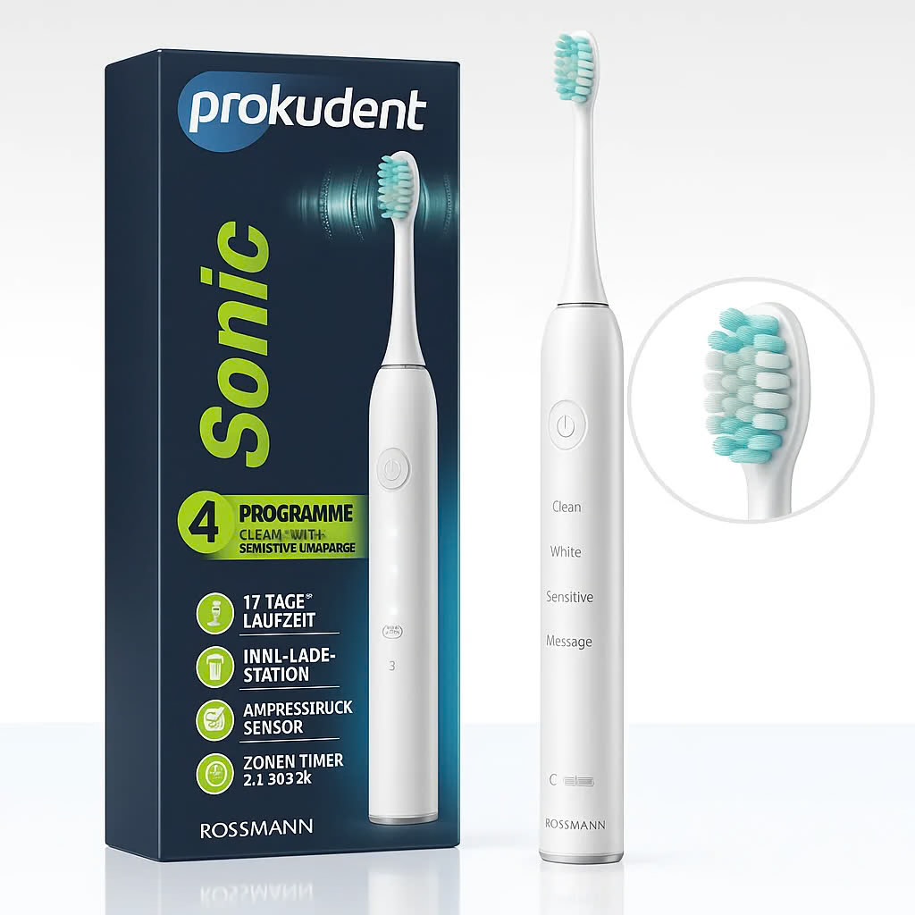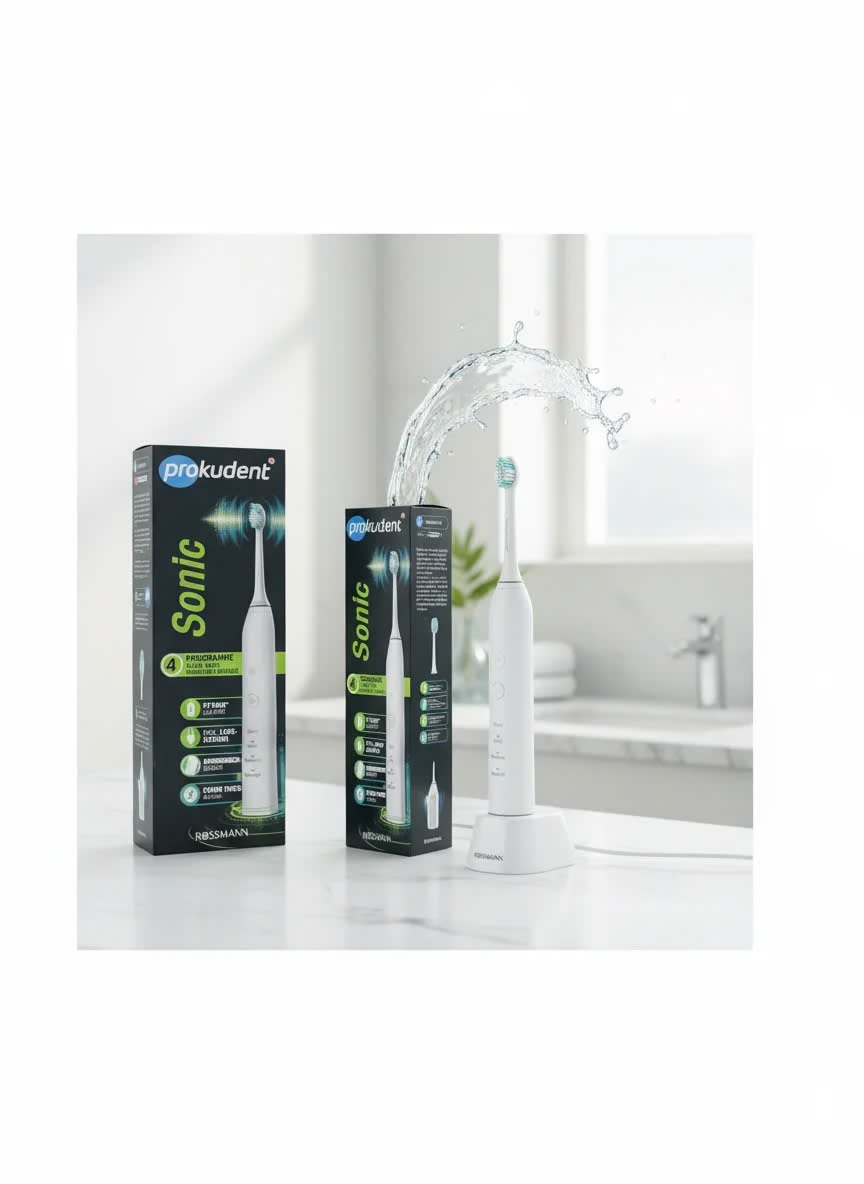 ۴ برنامهی کاربردی:Clean (پاکسازی روزانه)، White (سفیدکننده)، Sensitive (ملایم برای دندانهای حساس)، Massage (ماساژ لثه). سنسور فشار هوشمند برای جلوگیری از فشار بیش از حد به دندان و لثه. باتری قدرتمند Ni-MH با ظرفیت 900mAh و شارژدهی تا 17 روز (هر روز ۲ بار، هر بار ۲ دقیقه). ایستگاه شارژ القایی سازگار با ولتاژ 100 تا 240 ولت، مناسب برای استفاده در هر نقطه از جهان. تایمر منطقهای (Zonen Timer): تقسیم زمان مسواک زدن به ۴ بخش ۳۰ ثانیهای برای شستوشوی منظم همه نقاط دهان مسواک برقی پروکودنت سونیک (Prokudent Sonic) – پاکیزگی حرفهای و ملایمت بینظیر با فناوری پیشرفته لرزشهای صوتی، Prokudent Sonic تجربهای نو از مسواک زدن را برای شما فراهم میکند؛ ترکیبی از پاکیزگی عمیق و مراقبت ملایم، حتی برای دندانهای لمینت شده یا حساس