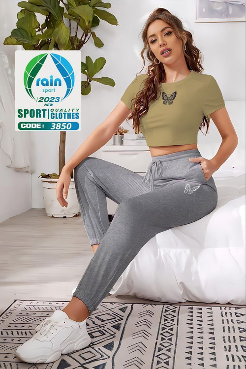 کراپ نخ پنبه و شلوار ملانژ
