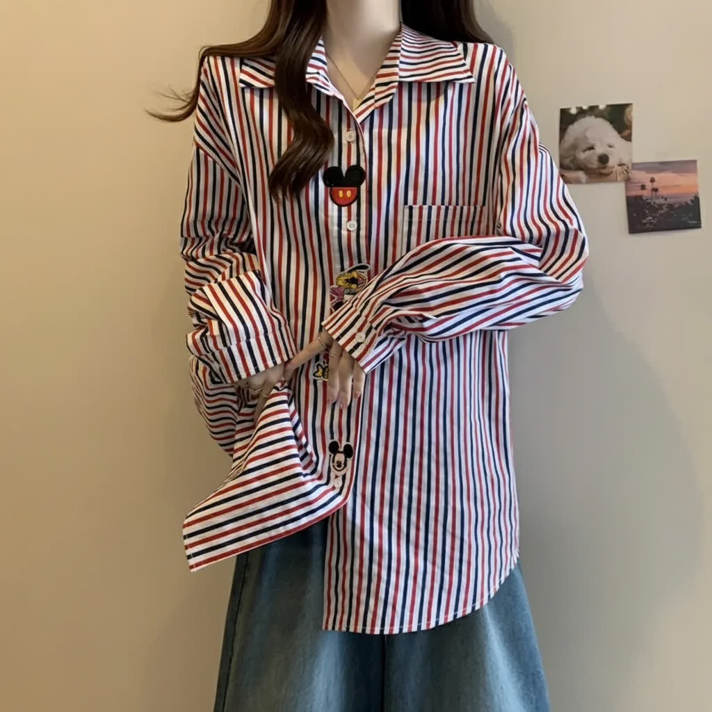 پیراهن زنانه راه‌راه طرح میکی موس – استایل غیررسمی و راحت برای استفاده روزمره