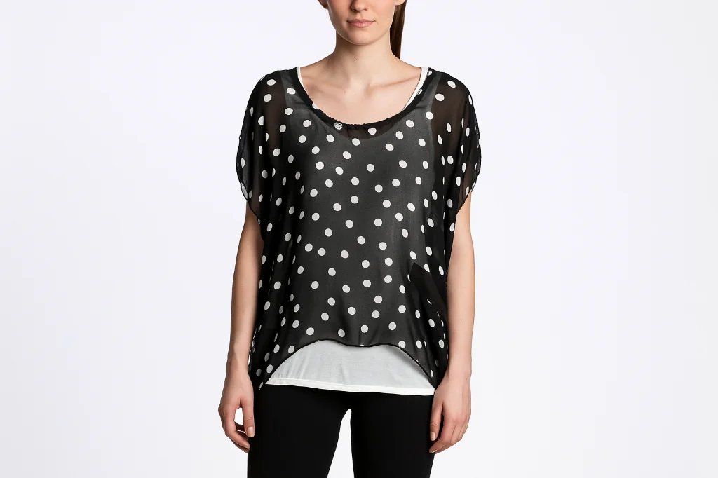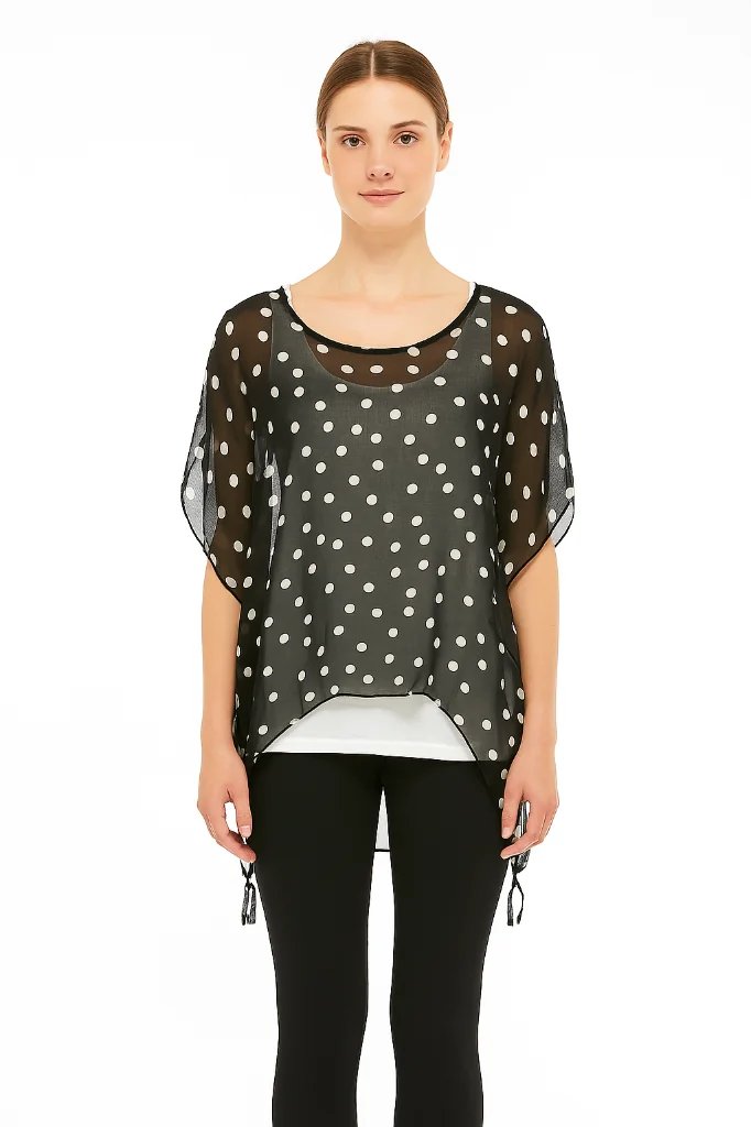 بلوز حریر مشکی خال‌خالی زنانه – استایل سبک، خنک و شیک برای تمام فصول و مجالس روزانه