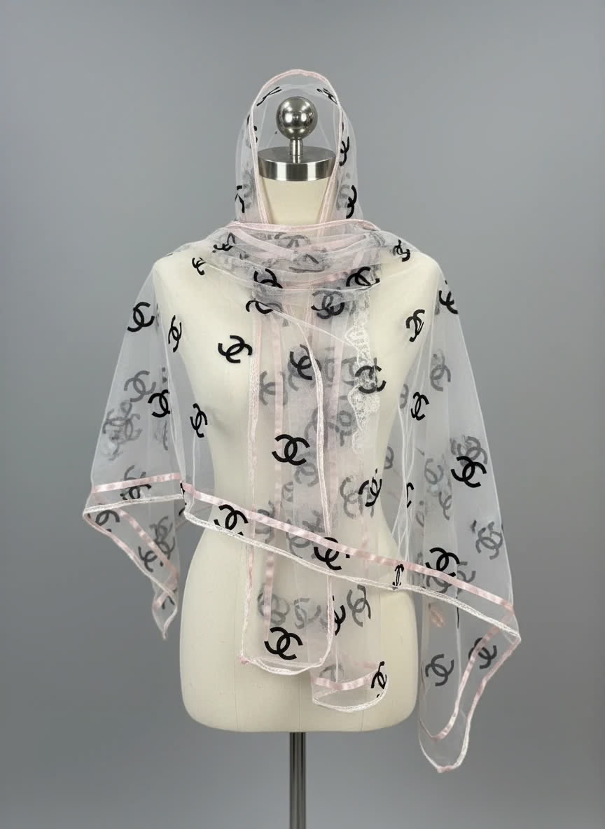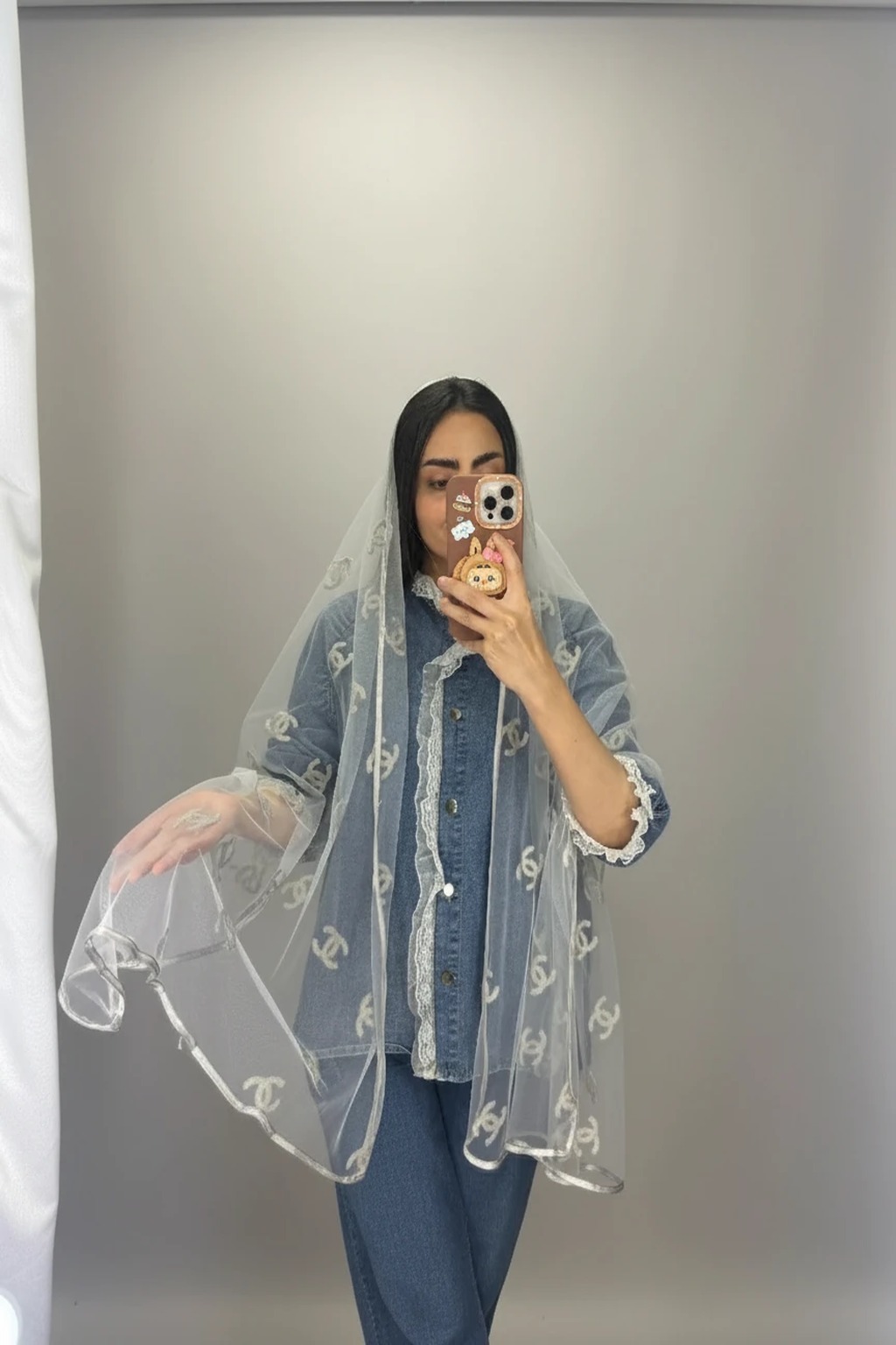 شال توری خاکستری زنانه با طرح طلایی براق و حاشیه‌دوزی ظریف – شال مجلسی سبک و شفاف طرح چنل