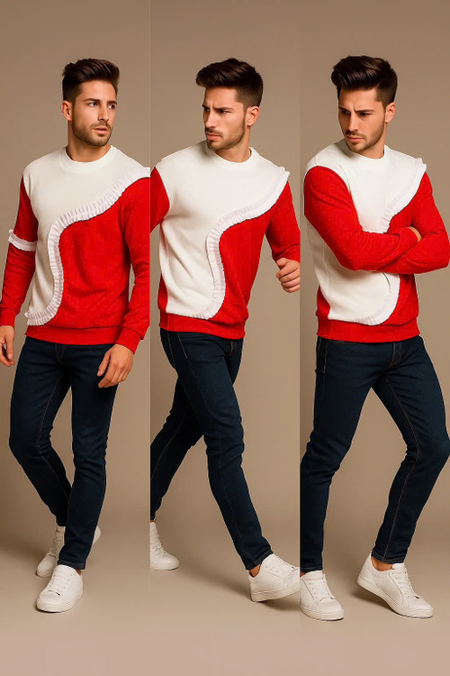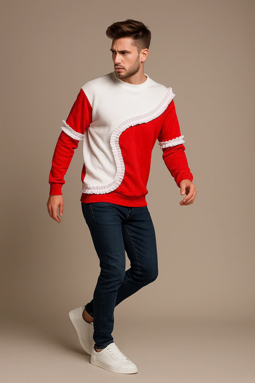 سویشرت مردانه قرمز و سفید مدل اسپرت با چین تزئینی | ترند جدید پاییز و زمستان