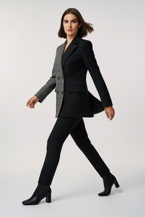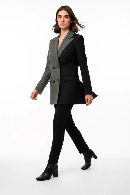 کت زنانه دو رنگ طوسی مشکی، مناسب مهمانی و محل کار