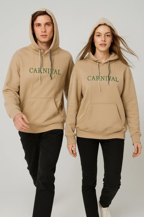 هودی ست زنانه و مردانه مدل CARNIVAL با رنگ کرم شیک، انتخابی عالی برای استایلهای اسپرت، روزمره و زوجی است. این هودی از پارچه گرم و لطیف با داخل کرک بسیار نرم ساخته شده و برای فصلهای پاییز، زمستان و روزهای خنک بهار کاملاً مناسب است.