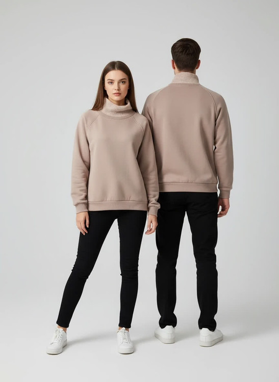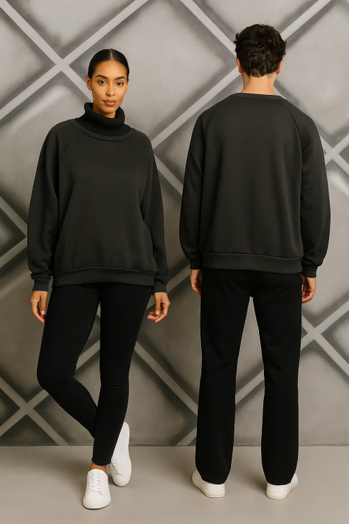سویشرت یقهاسکی ست زنانه و مردانه، انتخابی فوقالعاده برای استایل پاییزه و زمستانی است. این سویشرت از پارچه دورس ضخیم با داخل کرک نرم و گرم ساخته شده و یقهاسکی بلند آن باعث افزایش گرما و ظاهر شیکتر میشود. طراحی ساده و مینیمال این مدل باعث میشود بهراحتی با شلوار جین، اسلش، کتونی و استایل روزمره ترکیب شود.