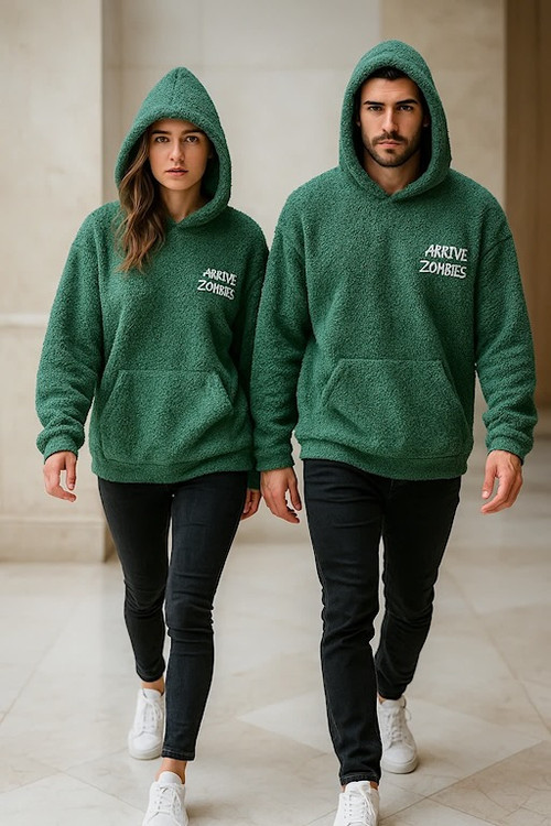 هودی پشمی سبز مدل ARRIVE ZOMBIES یک انتخاب فوقالعاده برای استایلهای پاییزه و زمستانه است. این مدل از فلیس ضخیم و بسیار گرم تهیه شده و بهخاطر لطافت و تنخور راحت، برای استفاده روزمره، دانشگاه، بیرونروی و ستهای زوج ایدهآل است.