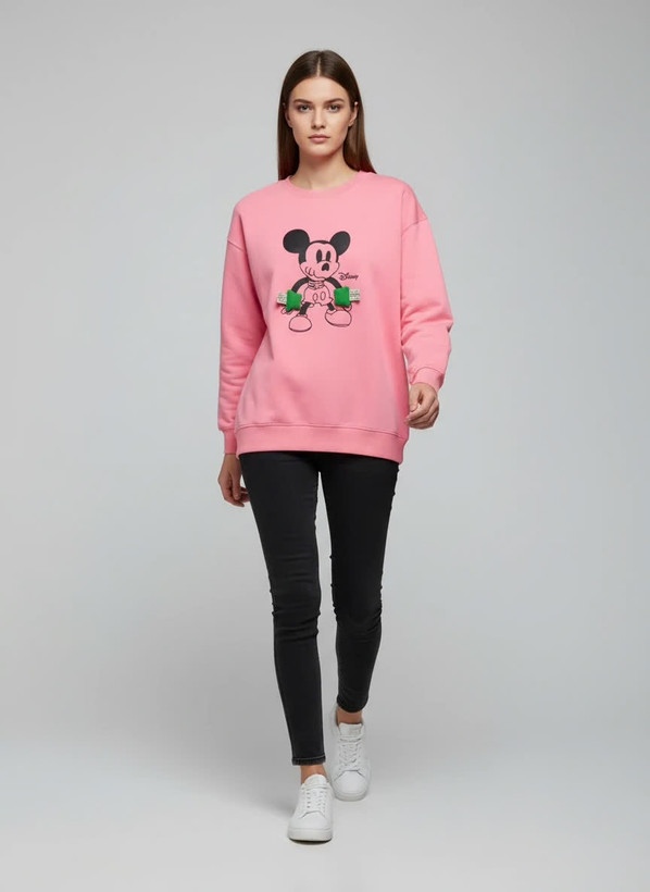 سویشرت دخترانه میکی موس با رنگ صورتی جذاب، پارچه لطیف و طرح فانتزی محبوب. مناسب استفاده روزمره و راحتی. کیفیت درجه یک با قیمت مناسب