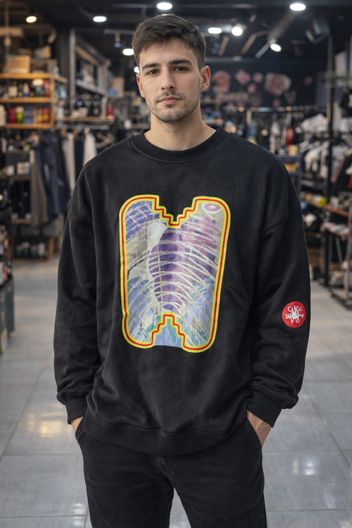دورس مشکی با طراحی چاپ گرافیکی خاص در قسمت جلو، انتخابی متفاوت برای استایلهای اسپرت و خیابونی.