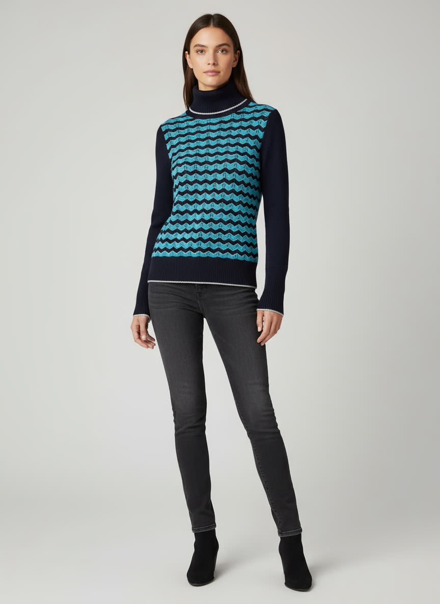 بافت یقه اسکی پاییزه کره ای ۲ رنگ سفید و آبی رنگ زمینه صورمه ای تک رنگ قد ۵۵ دورسینه ۱۰۰ قد یقه ۲۰ سانت