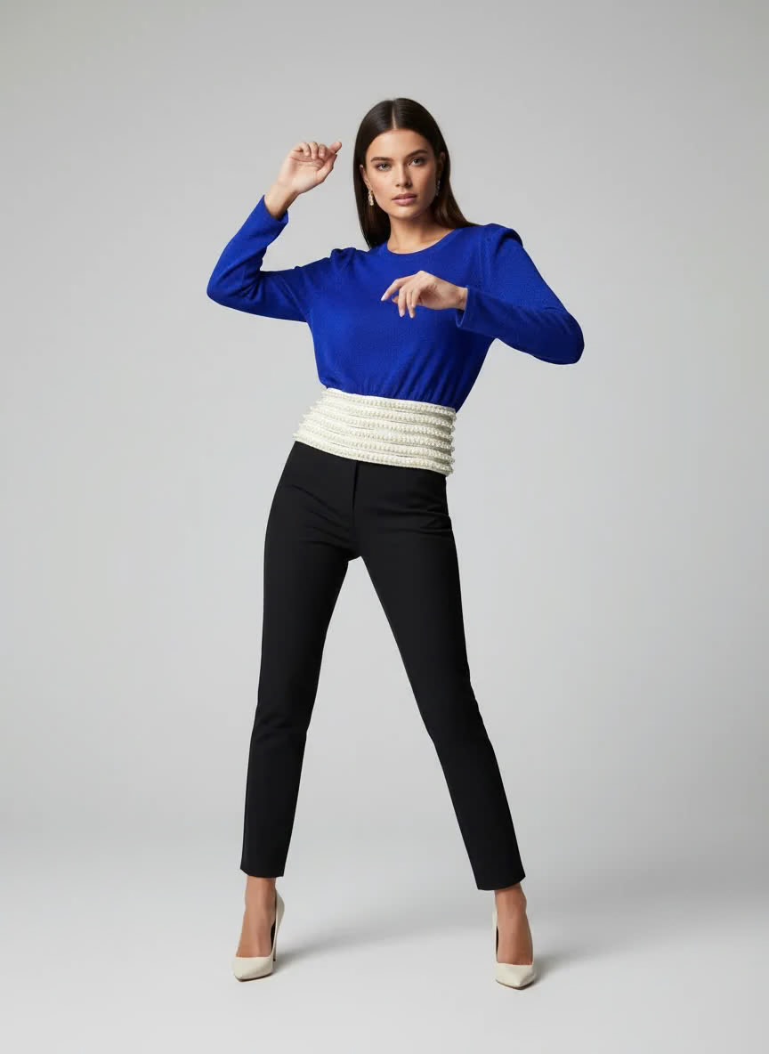 بلوز زنانه ش chiffon و knitted طرح هندسی سرمه‌ای | بلوز بلند مجلسی آستین پُف | مدل جدید ۲۰۲۵